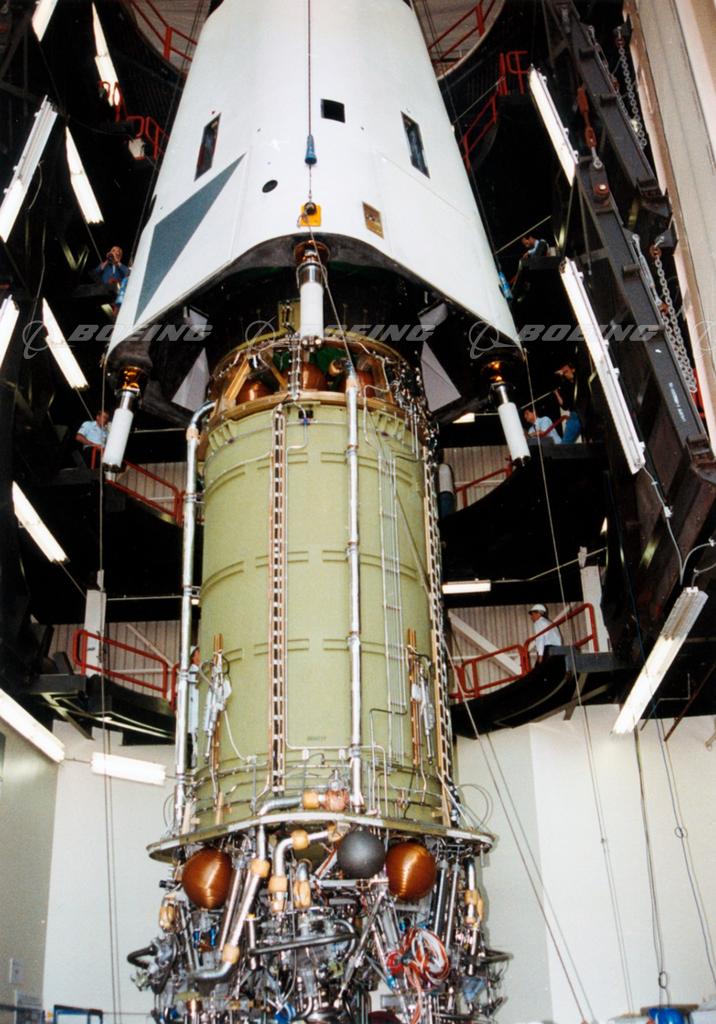 DC-X Aeroshell is Lowered over Hydrogen Tank and Thrust Structure