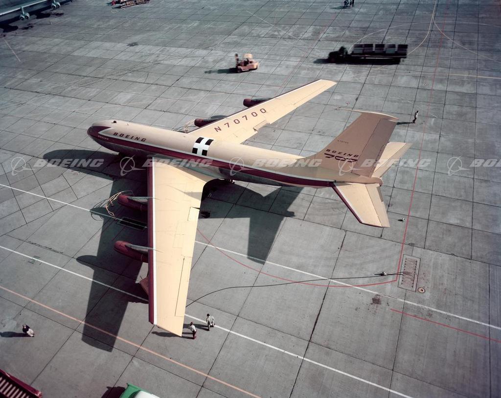 The Boeing Company invested $16 million (two-thirds of the company's net profits from the post-war years) to build the Dash 80 prototype for a long-range jet aircraft. It was developed in secrecy and designated Model 367-80 to disguise it as an improved version of the C-97 Stratofreigther. It was subsequently nicknamed the "Dash 80," had jet engines and swept wings, and was very different from the straight-wing, propeller-powered Stratofreighter. Because the prototype was constructed to sell first as a military-tanker transport, it had few windows and no seats, but had two large cargo doors. A week after its first flight, the Air Force ordered 29 tanker versions, the KC-135.