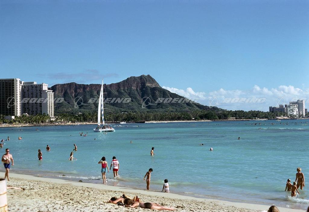Diamond Head and Waikiki Shoreline from the Ocean, Oahu, Hawaii
