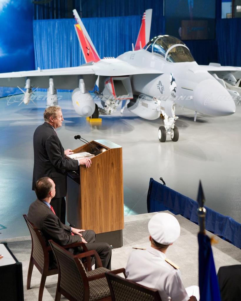 On August 4, 2006, The Boeing Company rolled out the U.S. armed forces' newest airborne electronic attack aircraft, the EA-18G Growler, on time and within budget. Boeing presented the aircraft to a crowd of more than 750 U.S. Navy customers, industry partners and Boeing employees during a ceremony at its Integrated Defense Systems facilities in St. Louis. A derivative of the combat-proven, two-seat F/A-18F Super Hornet, the EA-18G's highly flexible design enables warfighters to perform an array of airborne electronic attack (AEA) missions, operating from either the deck of an aircraft carrier or land-based fields.