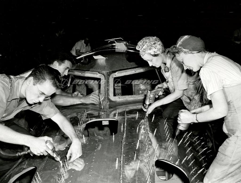 Employees Working Together on a Boeing B-17 Flying Fortress Assembly