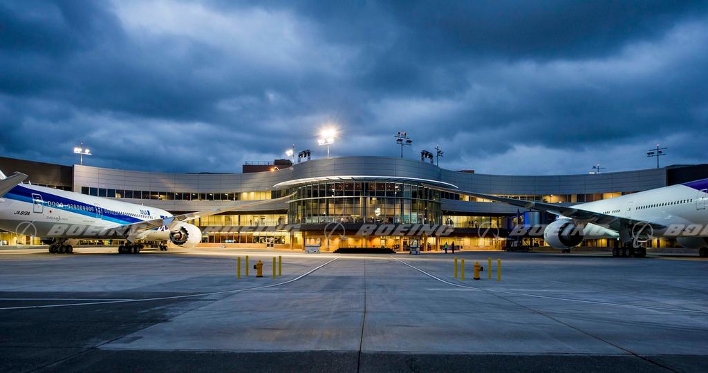 Boeing opened its new expanded Everett Delivery Center (EDC) on April 3, 2013. It is a world-class facility and the home of deliveries for the 747-8, 767, 777 and 787. The grand opening ceremony was attended by Boeing employees, customers and state dignitaries. The 180,000 sq. ft. facility triples the amount of office, conference and delivery operations space as the previous EDC and is designed to increase operational efficiencies. The building features three floors dedicated to customers and the delivery experience. Amenities include a customer lounge, a Tully's cafe, over 20 conference rooms, four contract signing rooms and 35 offices to support resident customers and on-site delivery teams. The design allows airplanes to pull up to the building and connect by custom boarding bridges, enhancing ease of customer travel. The building's highlight, a customer event area, offers sweeping views the Olympic Mountains beyond the neighboring flightline and Paine Field.