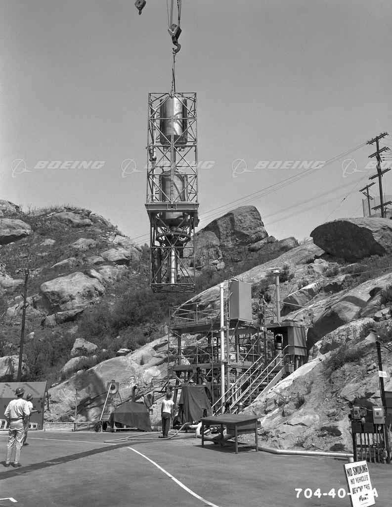 Space Shuttle Main Engine Lifted onto Test Stand A-1