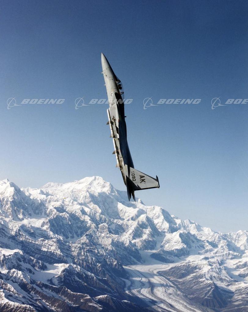 Two Alaska F-15 Eagles Banking Over a Glacier