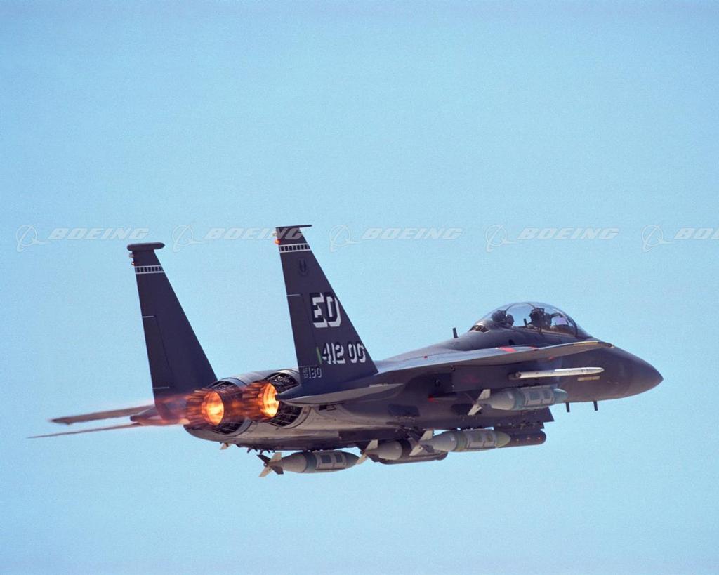 The F-15E Strike Eagle can carry up to 23,000 pounds of payload, including air-to-air and air-to-ground weapons such as the Joint Direct Attack Munition (JDAM) shown here, the AGM-130, the Advanced Medium Range Air-to-Air Missile (AMRAAM), or the AIM-9X.