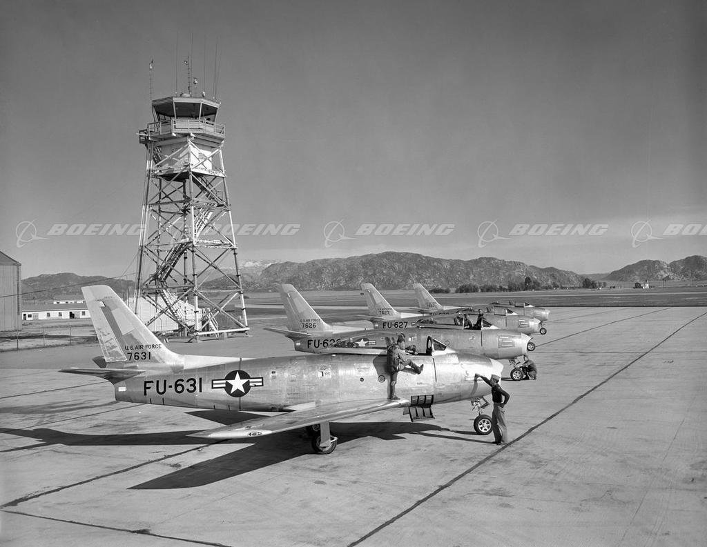 F-86A Sabre Jet Flight Line and Tower at March AFB