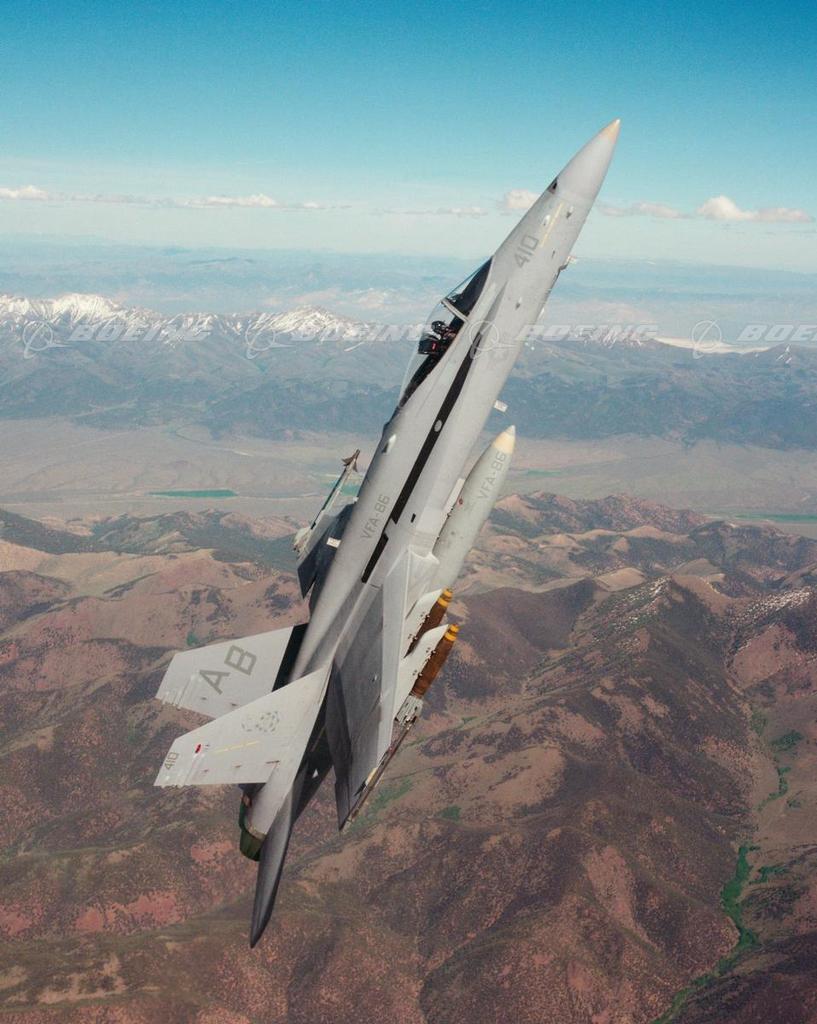 A U.S. Navy F/A-18C climbs above a desert mountain range in the Western United States. As of June 1988, more than 580 F/A-18 strike fighters had been delivered to the Navy and Marine Corps, which had a requirement for 1,157 Hornets at that time.