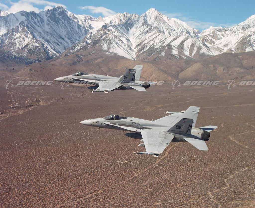 F/A-18 Hornets in Flight Above the Sierra Nevada Mountains