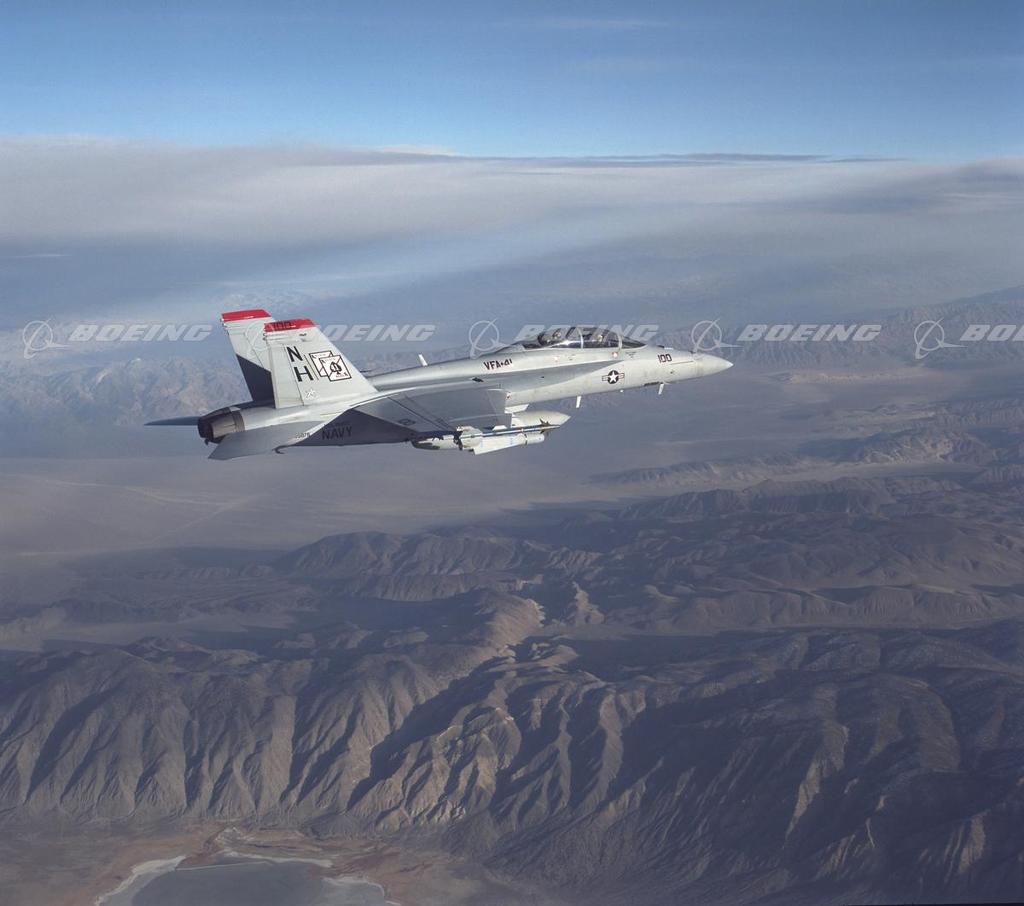 The F/A-18E/F Super Hornet made its first flight in November 1995. The Super Hornet is an advanced version of the combat-proven F/A-18 Hornet and is produced in the single-seat E model and the two-seat F model. The F/A-18E/F is 25 percent larger than the original Hornet and can perform a broad range of air-to-air and air-to-ground missions during the day or at night, in virtually any kind of weather. Equipped with an aerial refueling system, the Super Hornet also can serve as a tactical airborne tanker. Eleven weapons stations carry a vast array of air-to-air and air-to-surface weapons including precision-guided munitions. The Super Hornet can carry more than 17,000 pounds of ordnance, more than 30,000 pounds of fuel and can reach airspeeds of more than 1.5 times the speed of sound. It entered operational service with the U.S. Navy in 1999 and flew its first combat missions in 2002. The Super Hornet received the 1999 Robert J. Collier Trophy. By the end of 2005, more than 300 had been delivered, and production was planned for at least 460 Super Hornets through 2011.
