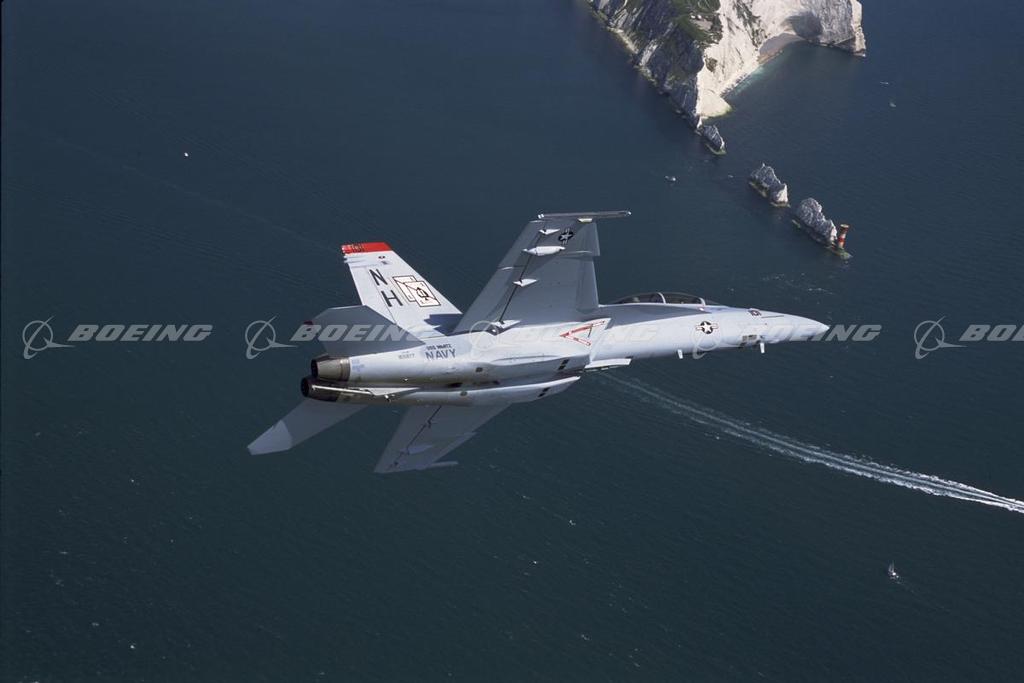 F/A-18E/F Super Hornet in Flight over the Coast of England near Dover