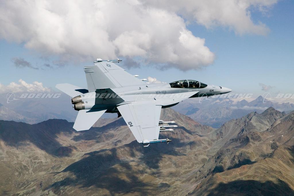 F/A-18E/F Super Hornet in Flight over Swiss Alps