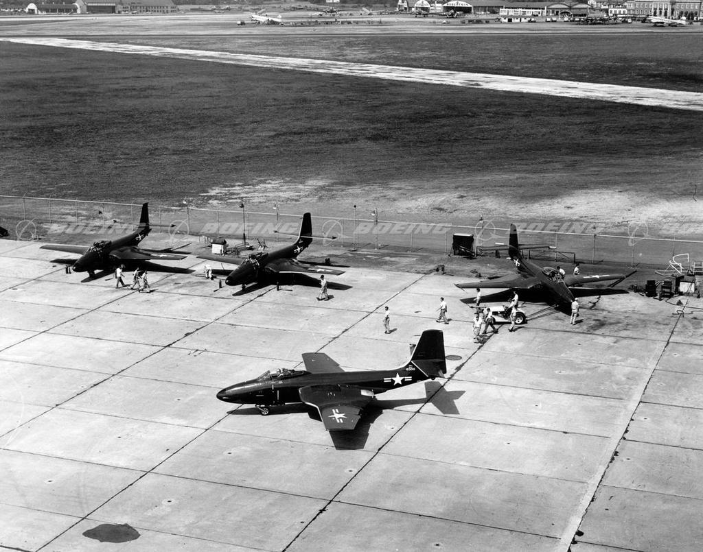 XFD-1 Phantom and XF2D-1 Banshee on St. Louis Flight Ramp