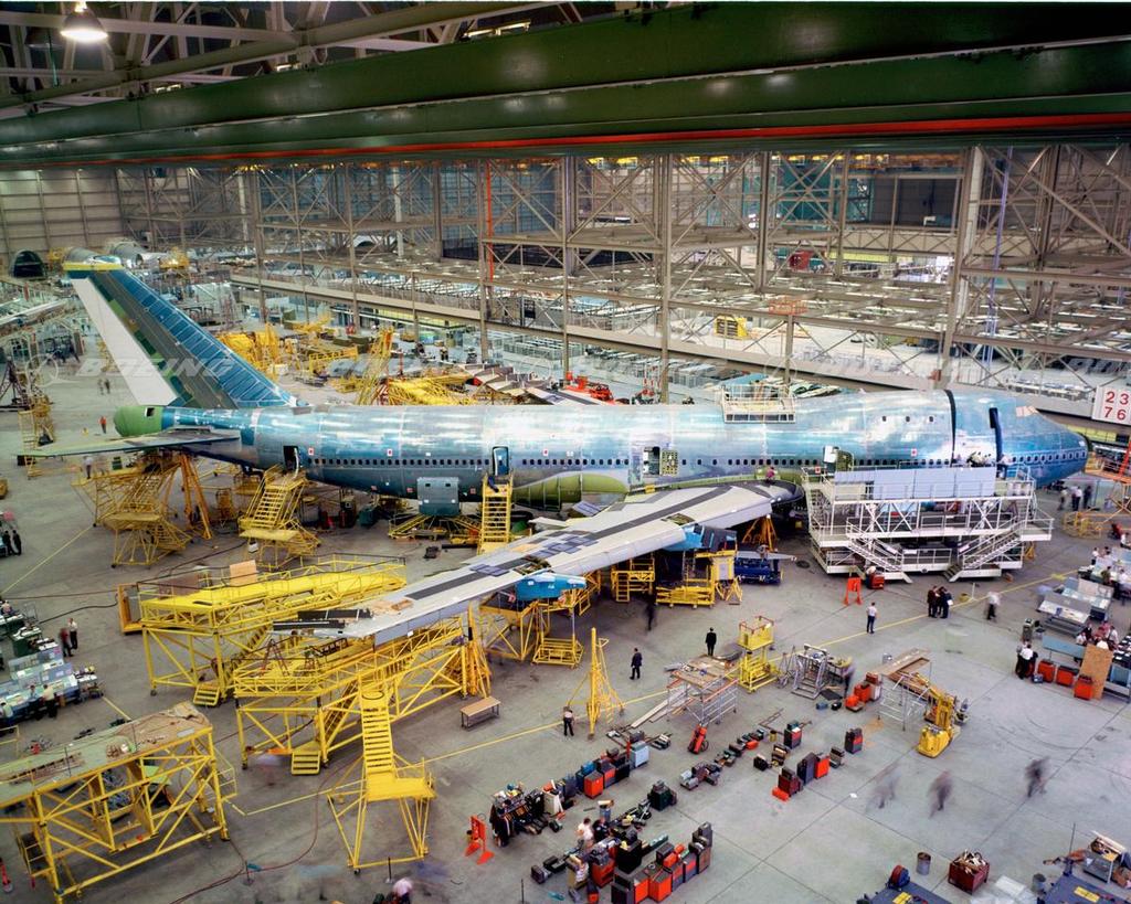 The 747 was truly monumental in size. The massive airplane required construction of the 200-million-cubic-foot 747 assembly plant in Everett, WA, the world's largest building (by volume). The fuselage of the original 747 was 225 feet long; the tail as tall as a six-story building. Pressurized, it carried a ton of air. The cargo hold had room for 3,400 pieces of baggage and could be unloaded in seven minutes. The total wing area was larger than a basketball court. Yet, the entire global navigation system weighed less than a modern laptop computer.