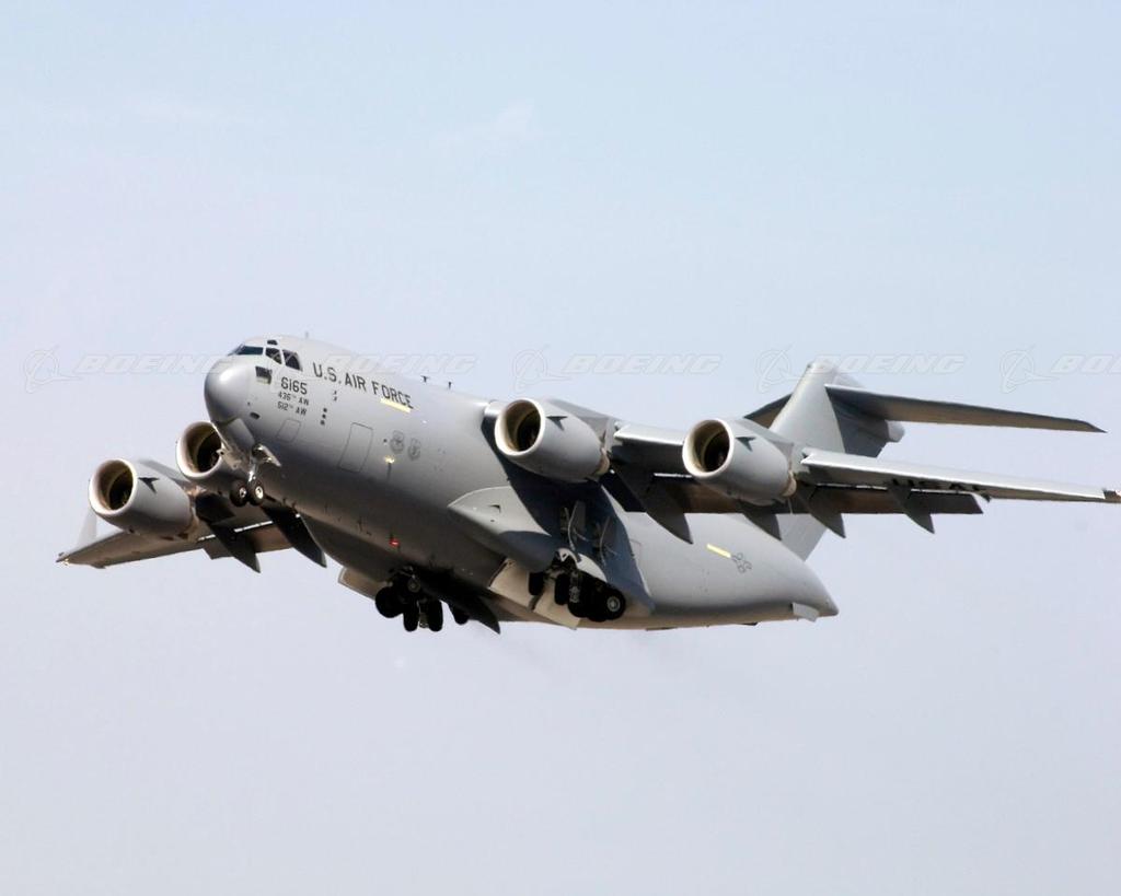 The Boeing Company delivered the first of 13 C-17 Globemaster IIIs to Dover (Del.) Air Force Base officials on May 31, 2007. Here, the C-17 is shown on its first flight in Long Beach, CA.