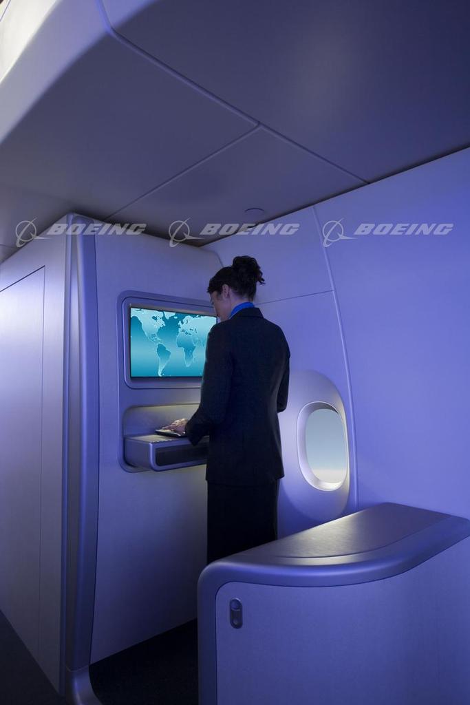 Flight Attendant at Console in 747-8 Intercontinental
