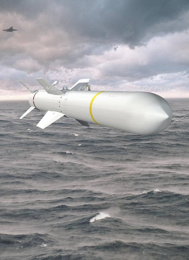 An artist's rendering shows the Harpoon missile, which Boeing and its legacy companies have produced for more than 40 years. (Boeing image)