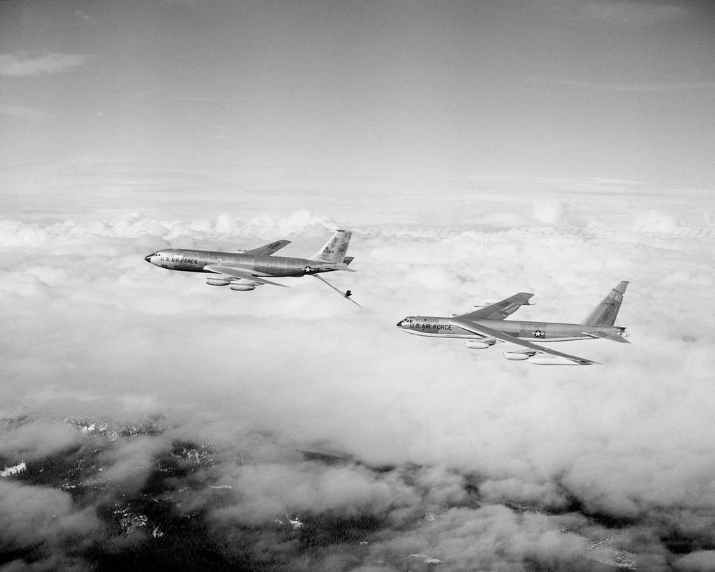 Dash 80 and B-52 Fly Over KC-135 Rollout, with KC-97 in Background