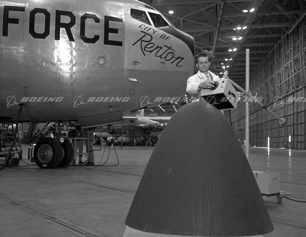 B-52D on Boeing Flight Line with KC-135 and 707s, 1959