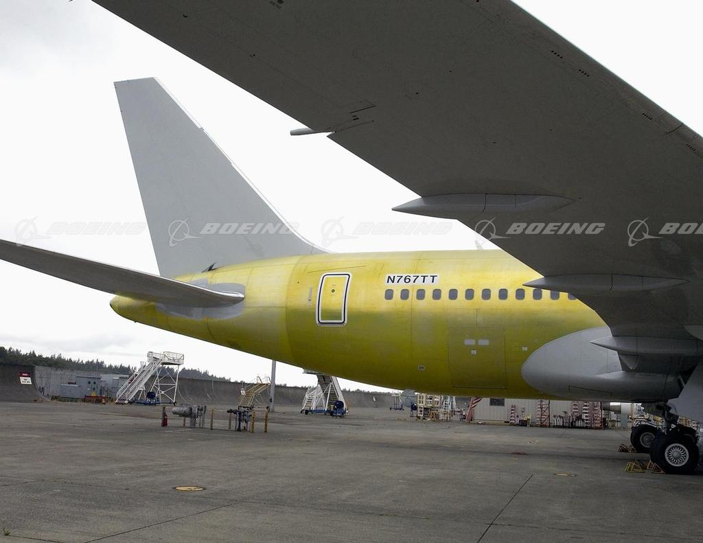 The first 767 Global Tanker prepares to depart Everett to undergo final modifications at Boeing's Wichita facility.