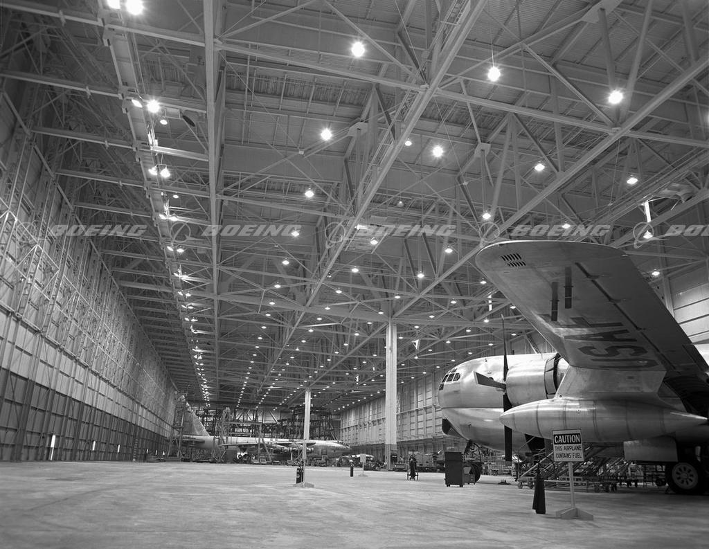 XB-52 Stratofortress and C-46 Commando in Boeing Flight Test Hangar