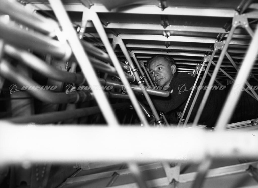 Jim Tenhoff inside a B-17 wing, WWII at Douglas Factory