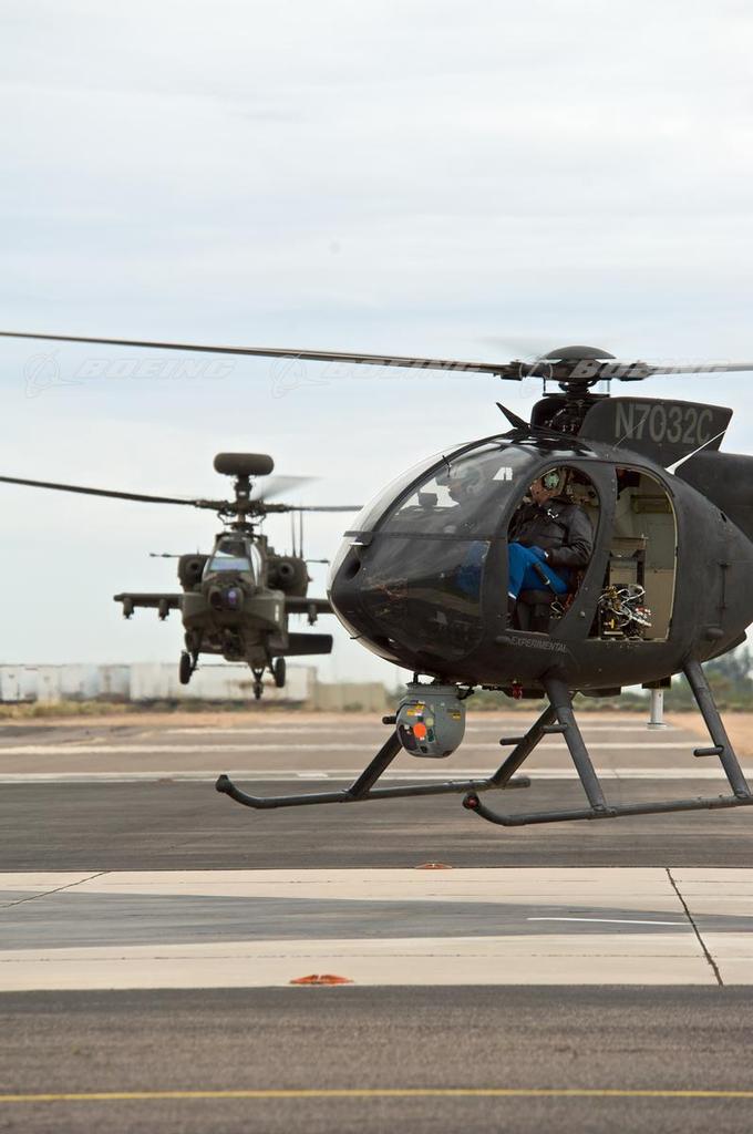 MH-6 Little Bird UAV with AH-64D Apache Longbow