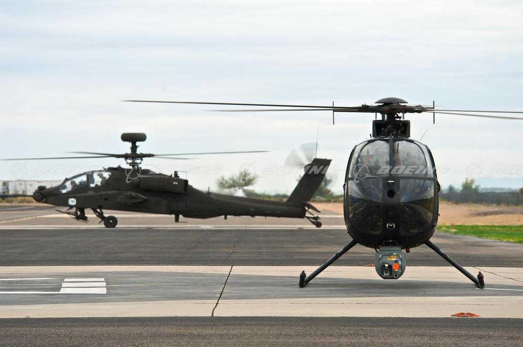 MH-6 Little Bird UAV with AH-64D Apache Longbow at Mesa, Arizona