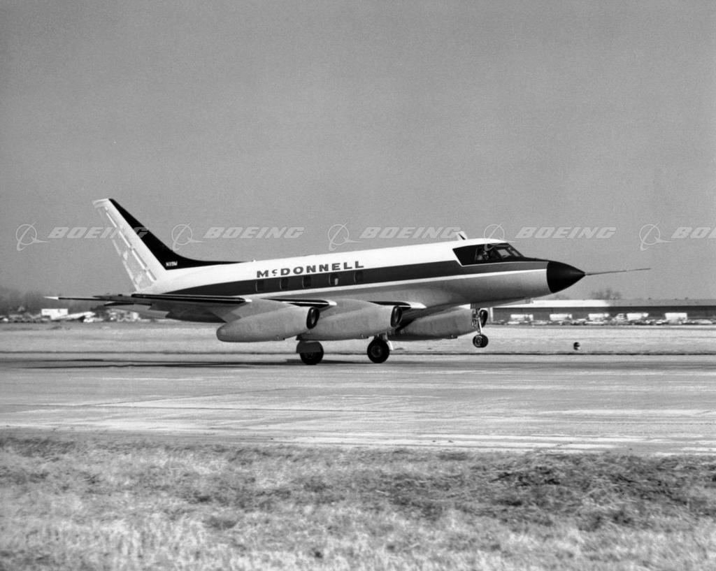 The McDonnell Model 119 was designed and built in response to a 1956 Air Force competition for a UCX utility aircraft. The Model 119 was a four-engine turbo-jet powered low-wing monoplane with a tricycle landing gear that was designed to accomodate a ten passengers and a crew of two. When McDonnell lost the Air Force contract to Lockheed, the company tried to market the airplane as a commercial business jet called the Model 220.