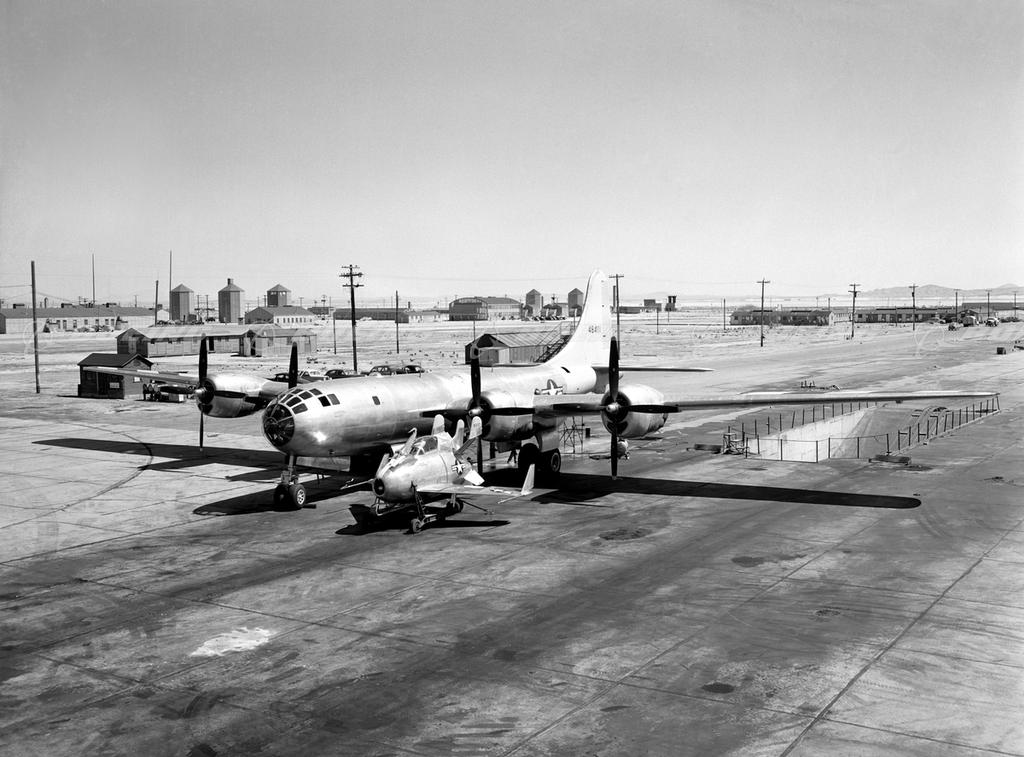 McDonnell XF-85 Goblin with B-29 Mothership at Muroc Facility, April 1949