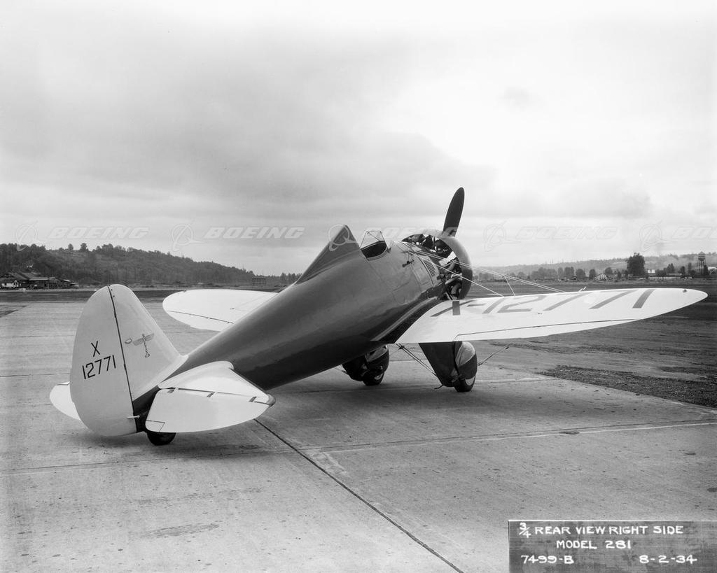 The Boeing 281 of 1936 was the export version of the United States Army Air Corps' P-26A, and was the same except for such equipment as radio, guns, camera gun and oxygen installations on which approval for export was witheld by the US government. Eleven were build for the Chinese government and one for Spain. P-26C production also continued. Specifications: Wing span 28 feet; length 23'7"; weight 2,955 pounds; speed 234 mph; ceiling 28,900 feet; range 635 miles; power, Pratt & Whitney R-1340-27 (600 hp) engines.