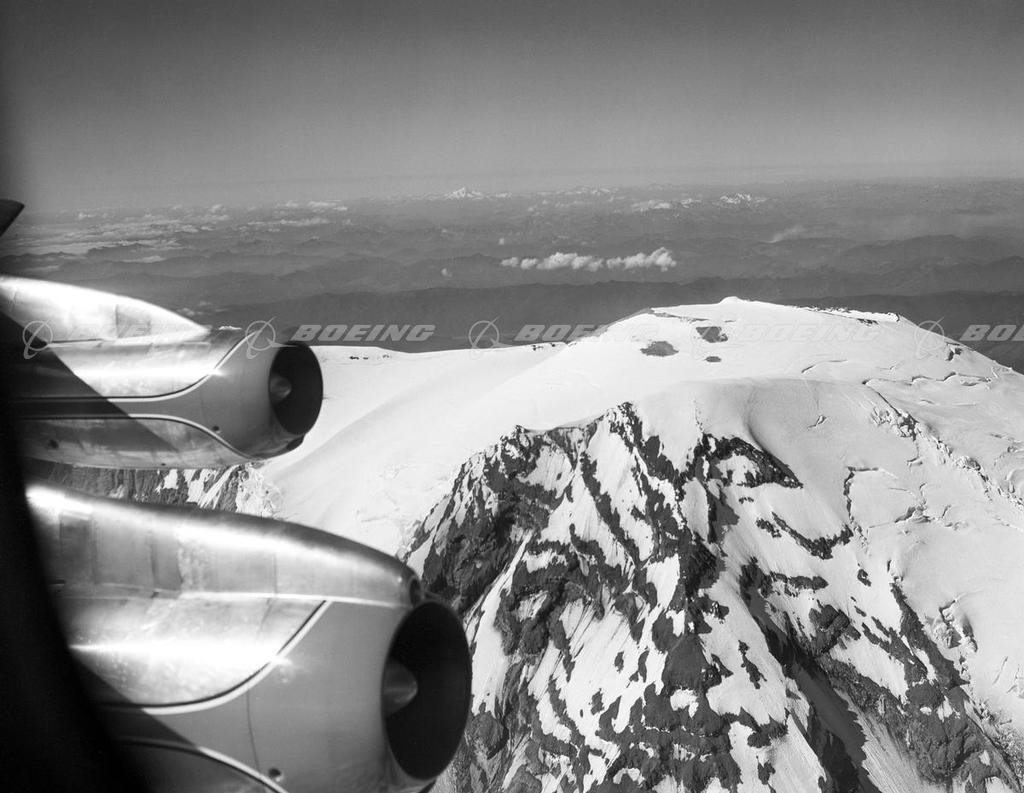 Mt. St. Helens Looms in Front of Mt. Adams in this Photo Taken from a C-97A in 1950