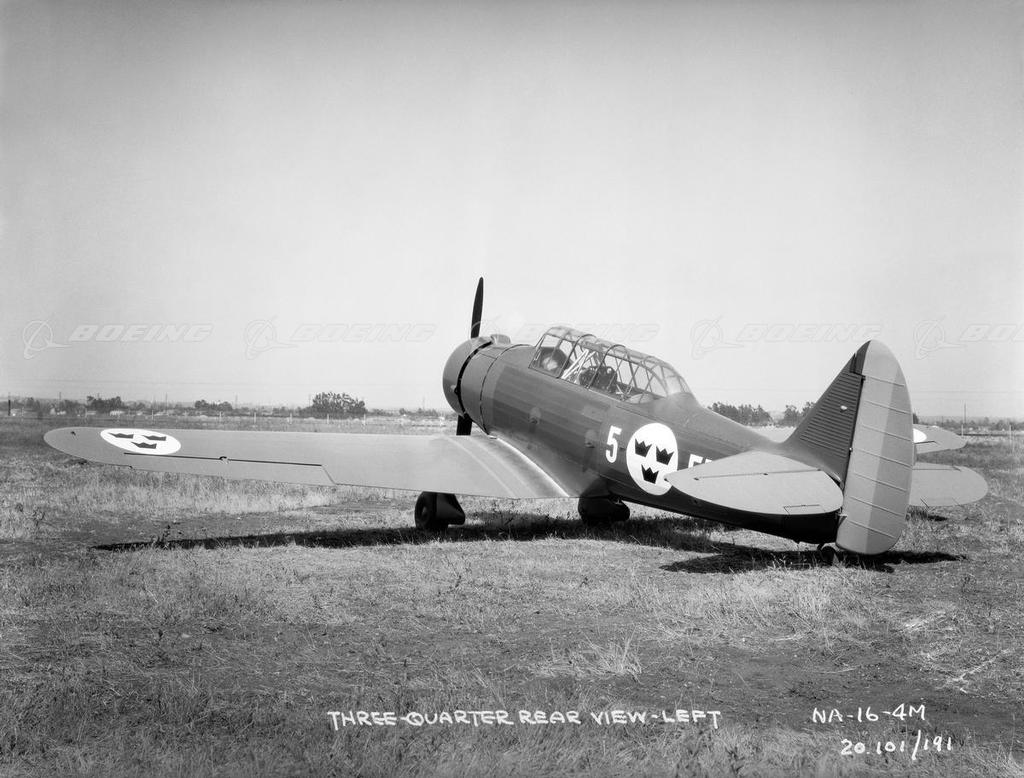 The low-wing monoplane prototype for the NA-16 had open cockpits in tandem and a fixed, unfaired undercarriage. Made mostly of metal, but with some fabric on the rear fuselage, it was submitted to the Army Air Corps for evaluation within a month of its first flight, and the design was selected for production as a basic trainer. However, the Air Corps requested the cockpits be enclosed, fairing installed on the undercarriage and the engine changed to a 600-horsepower P&W R1340 engine. The production versions (shown here) launched North American as a manufacturer of training aircraft. In all, more than 17,000 derivatives of the NA-16 were built in North American's Los Angeles, California, and Dallas, Texas, plants during the 1930s and 1940s.