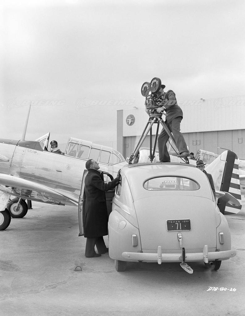 Newsreel Cameraman Films AT-6 Texans from the Top of a Car