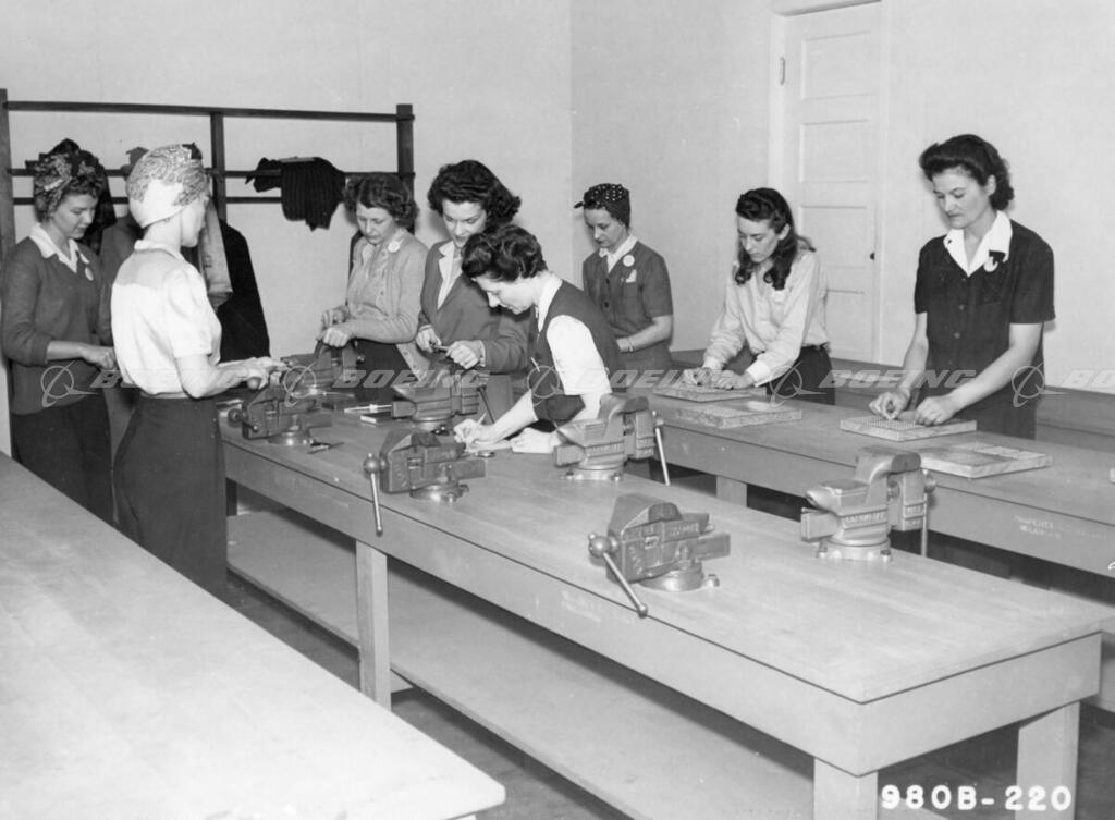 Female Employee Machinist Working on Aircraft for Douglas Aircraft Company