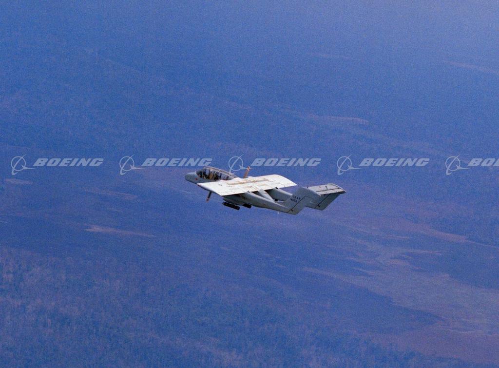 The OV-10 Bronco, a rugged, maneuverable, twin-turboprop, multimission aircraft, was designed and built by North American at Columbus, Ohio. The Bronco complemented the performance requirements between jets and helicopters. Faster and more tactically versatile than helicopters, yet slower and more maneuverable than jets, the Bronco utilized tactics not possible with either. The OV-10D night observation system (NOS) featured a unique night observation and target marking system that included forward-looking infrared (FLIR) and laser designator/ranger. With uprated 1040 SHP turboprop engines and fiberglass propellers, NOS provided greater range, improved performance and greater survivability.