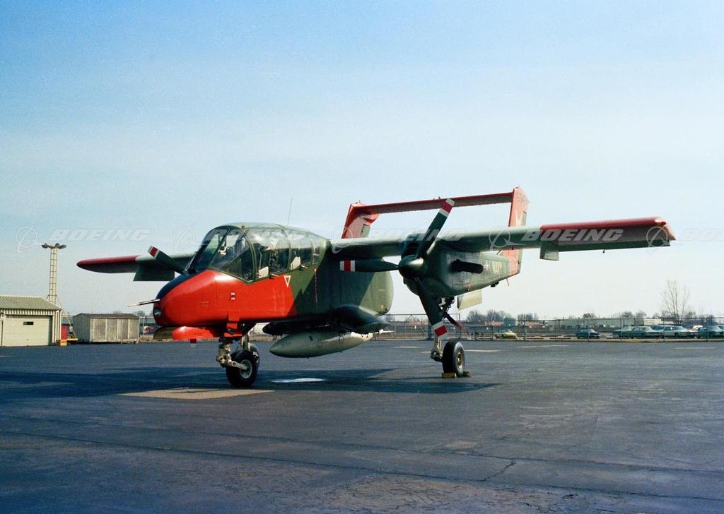 The OV-10 Bronco, a rugged, maneuverable, twin-turboprop, multimission aircraft, was designed and built by North American at Columbus, Ohio. The Bronco complemented the performance requirements between jets and helicopters. Faster and more tactically versatile than helicopters, yet slower and more maneuverable than jets, the Bronco utilized tactics not possible with either. The OV-10D night observation system (NOS) featured a unique night observation and target marking system that included forward-looking infrared (FLIR) and laser designator/ranger. With uprated 1040 SHP turboprop engines and fiberglass propellers, NOS provided greater range, improved performance and greater survivability.