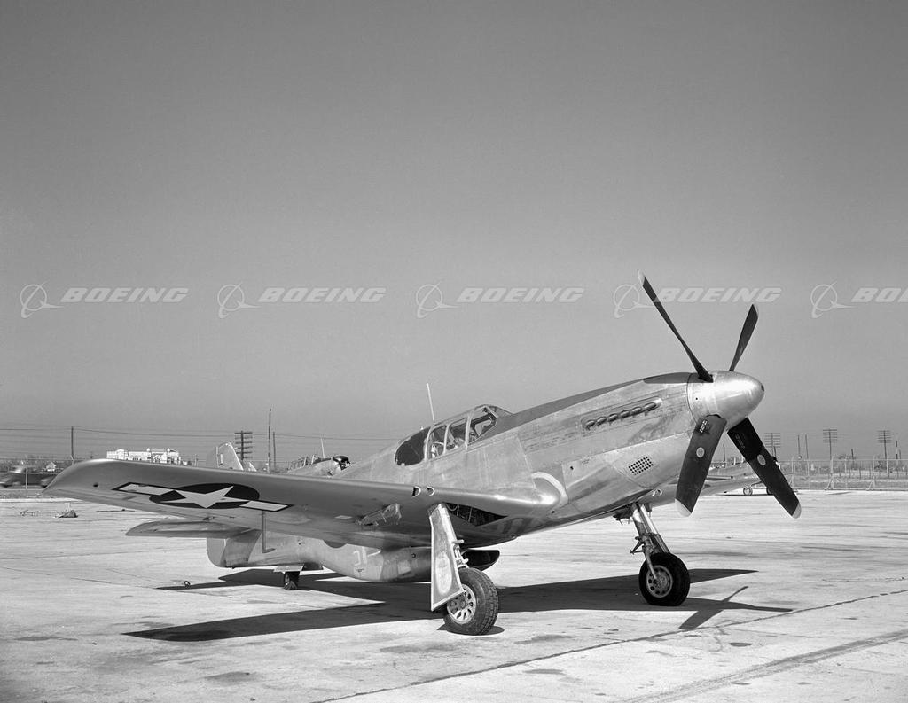 North American Aviation's powerful and agile P-51 was the first single-engine aircraft based in England to penetrate Nazi Germany during World War II. With its superior aerodynamics, the Mustang outperformed enemy planes and went on to establish an impressive aerial record. It first flew in 1941 and was initially designed for the British Royal Air Force for fighter reconnaissance. By war's end North American built 15,575 P-51 Mustangs. The P-51D Mustang had a wingspan of 37 feet and was 32 feet long. Powered by one 1,490- horsepower engine, it flew 437 mph with a range of 2,300 miles.
