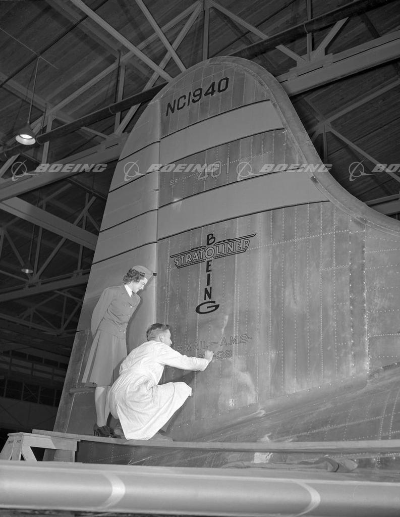 Ladies Decorate the Tail Section of Boeing Plant II's Last B-17 Flying Fortress