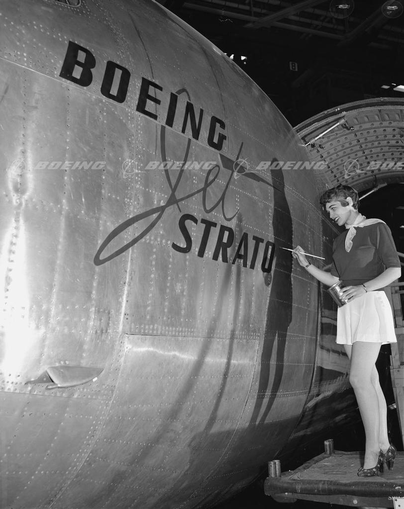 Mrs. William Boeing Christens the Boeing Dash 80 Prototype