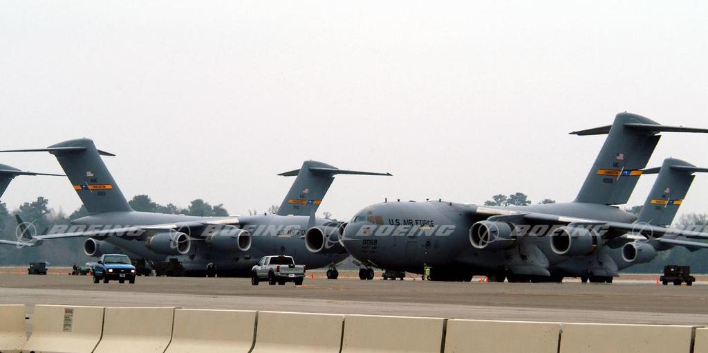 C-17 Globemaster III Landing Over Fleet of C-17s