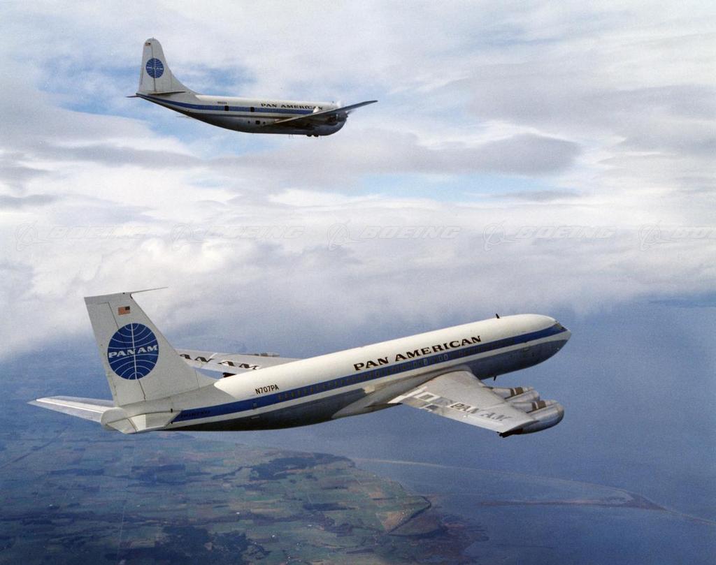Pan Am's 707 in Flight with 377 Stratocruiser