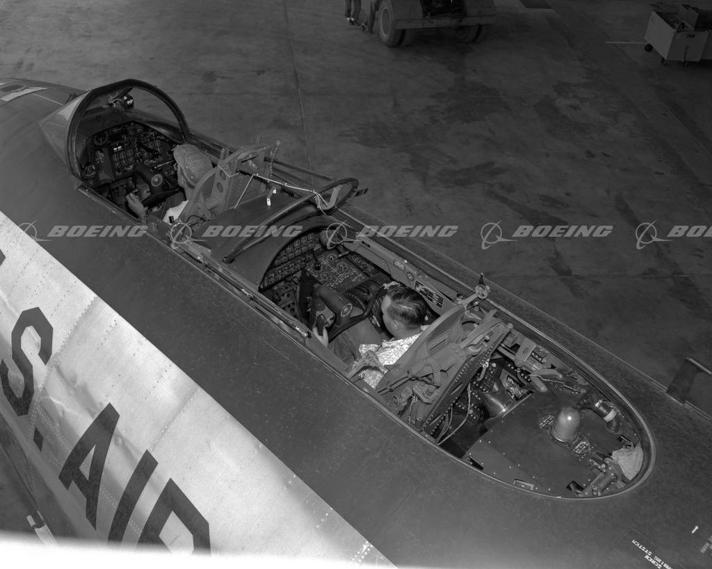 Boeing Worker Reaches Up Under B-47E Stratojet Wing