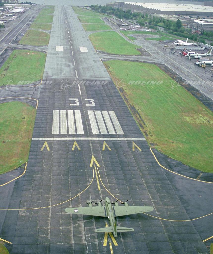 Restored B-17F Flying Fortress Above the Museum of Flight