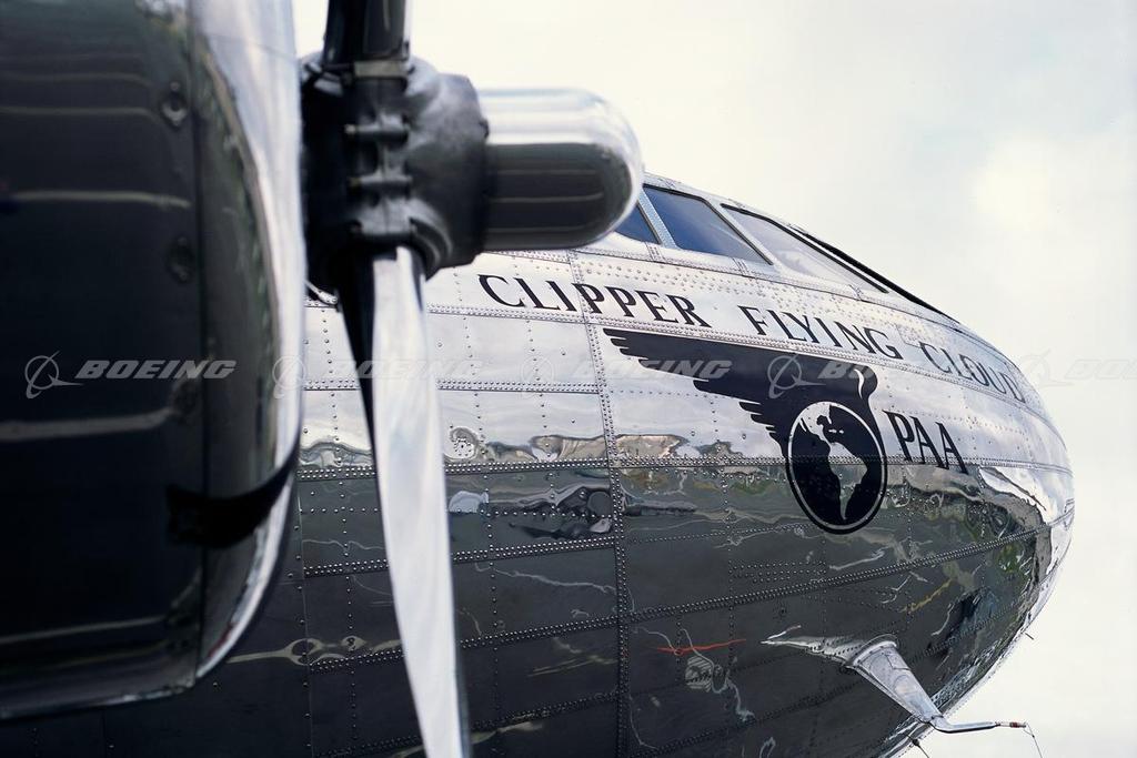 Boeing 307 Stratoliners were the world's first fully pressurized commercial airliners. They were able to fly at 20,000 feet, which was deemed "above the weather" at that time. Boeing built just 10 of them. In 1994, Boeing made arrangements with the Smithsonian to restore one of the 307s, the Flying Cloud, and a Boeing team brought the airplane back to Seattle, where the work was done in the original Plant II 307 production hangar by a team of volunteers and Boeing employees. The restoration was completed in 2003 and the Flying Cloud is now on permanent display at the Steven F. Udvar-Hazy Center at the Smithsonian National Air and Space Museum annex near Dulles airport. The restored Flying Cloud is pictured here at Boeing Field prior to delivery to the Smitsonian.