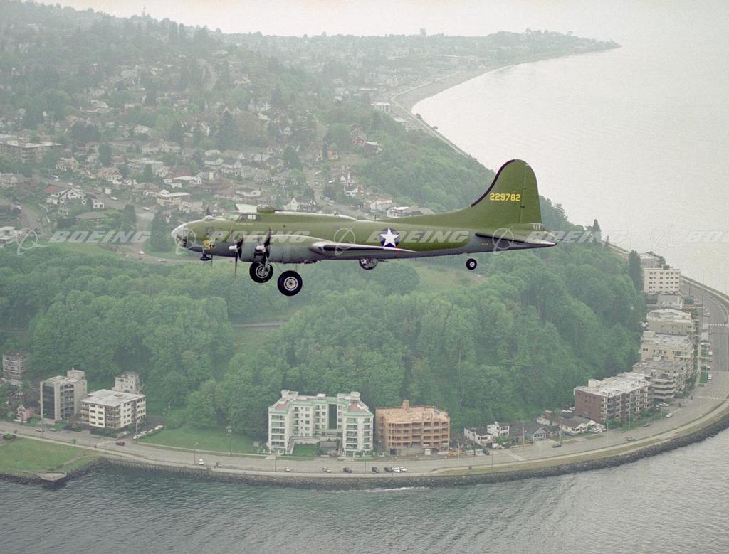 Restored B-17F Flying Fortress Above the Museum of Flight