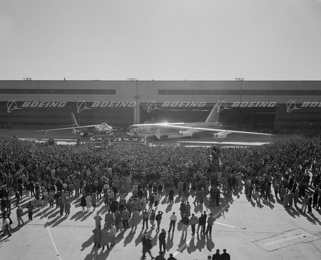B-47 Stratojet at Rollout Ceremony for B-52D Stratofortress Number1