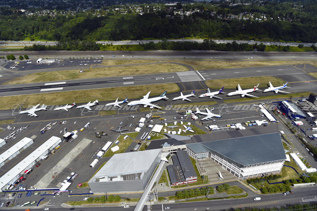 Seven (7) Series from Air; 707; 717; 727; 737; 747; 757; 767; 777-300-ER; 787; Omega; Delta; United; Alaska; Cathay pacific; FedEx; Emirates; ANA; Museum of Flight; Boeing field; 2016-07-16; parallel view; K66565-40