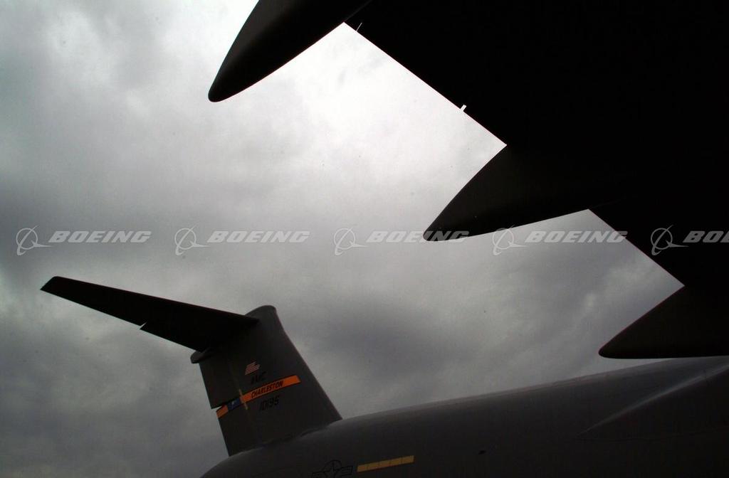 Silhouette of C-17 Globemaster III Tail from Under Wing