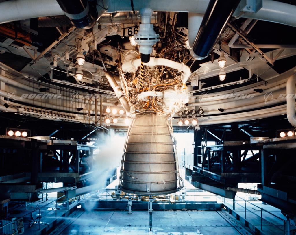 Space Shuttle Main Engine #0001 undergoes static test at NASA's National Space Technology Laboratories, Bay St. Louis, Missouri, one of 67 tests conducted by Rocketdyne on this engine during a 14-month period. A total of 400 seconds of test time was accrued. Longest single test was for a duration of 60 seconds. Contract with NASA's Marshall Space Flight Center calls for SSMEs to operate for 55 missions between overhauls. Three of the main engines being developed and produced by Rockwell International's Rocketdyne Division for the Space Shuttle will generate 470,000 pounds of thrust to power the manned orbiter stage of the vehicle.