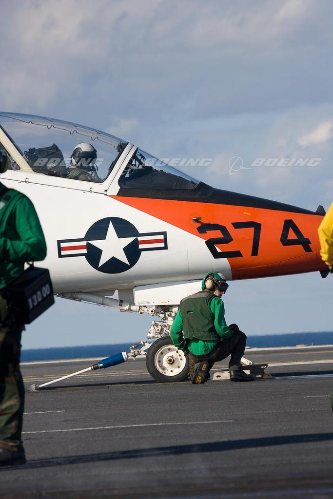 The T-45 Goshawk is the center of the T-45 training system, which was designed for undergraduate jet aircraft training. The Goshawk is a heavily modified naval variant of the Hawk, a land-suitable trainer produced by U.K.-based BAE Systems. Boeing delivered the 221st and final T-45 training jet to the U.S. Navy in November 2009.